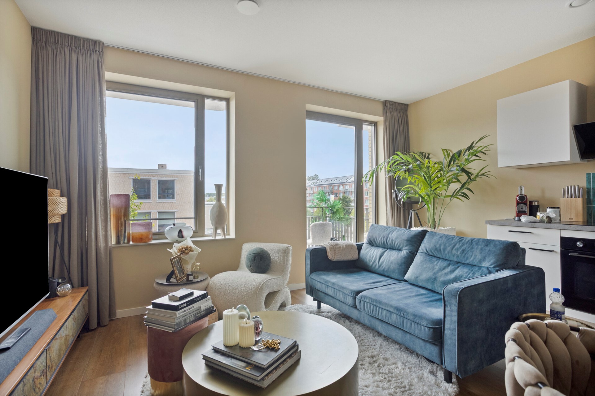 The facades, walls, floors, roof, window frames, and exterior doors are extra insulated. The apartments also have their own solar panels on the roof and HR+++ glass with high insulation value in the window frames. This gives the property the highly sought-after, high energy rating of A+++.