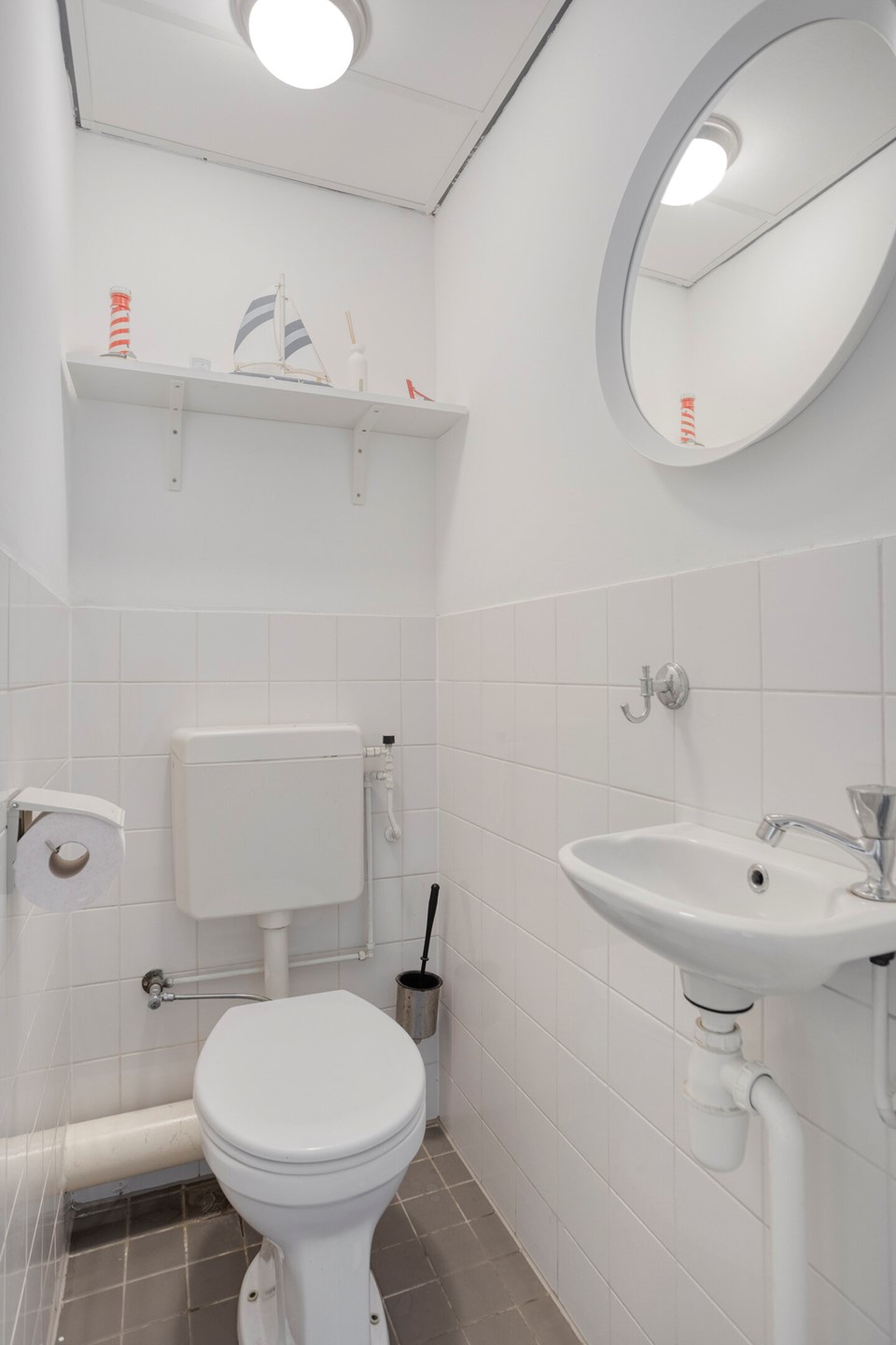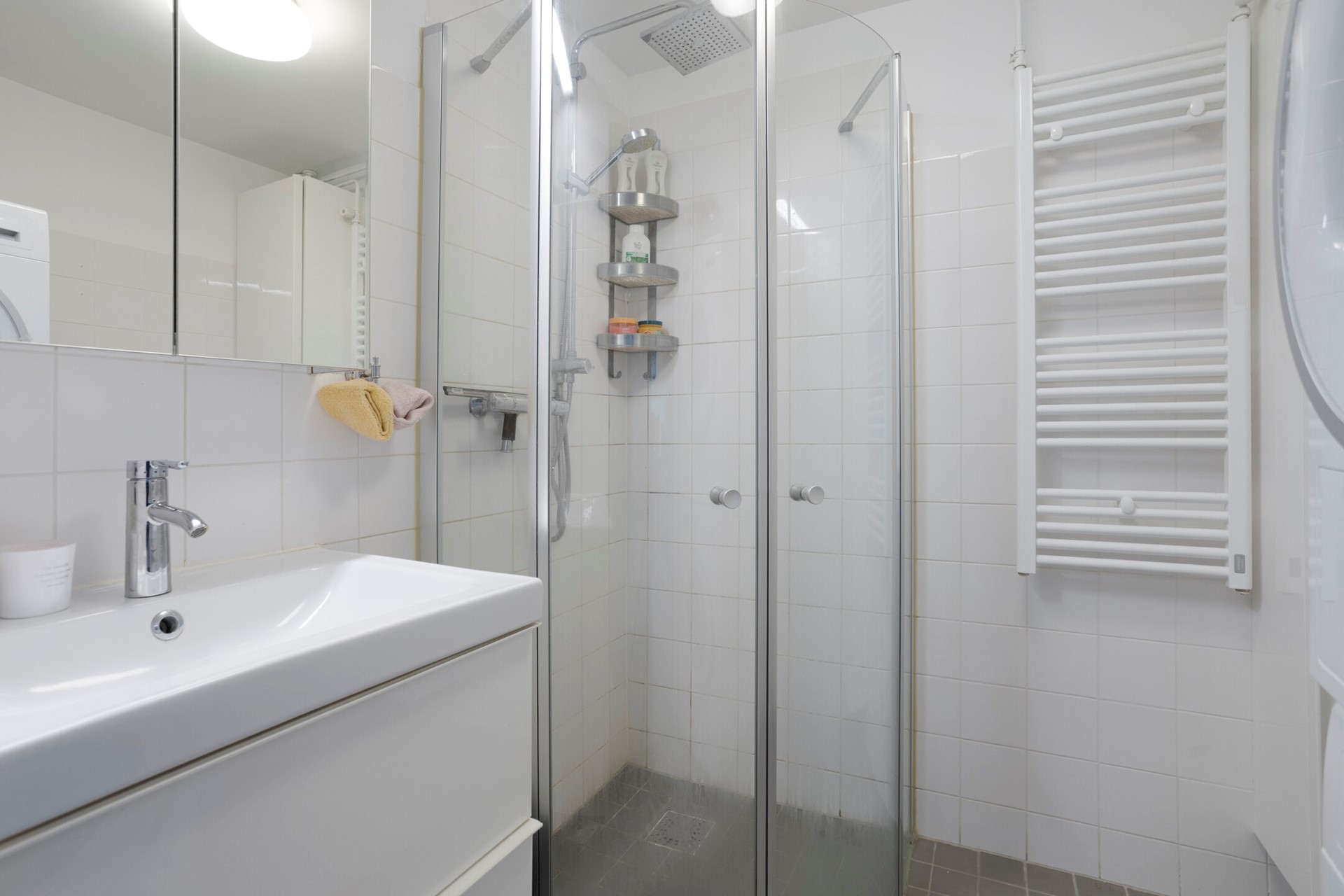- Badkamer: De badkamer is keurig betegeld en uitgerust met een douchecabine, wastafel met spiegel en aansluiting voor de wasmachine. Het aparte toilet met fonteintje bevindt zich tegenover de badkamer.