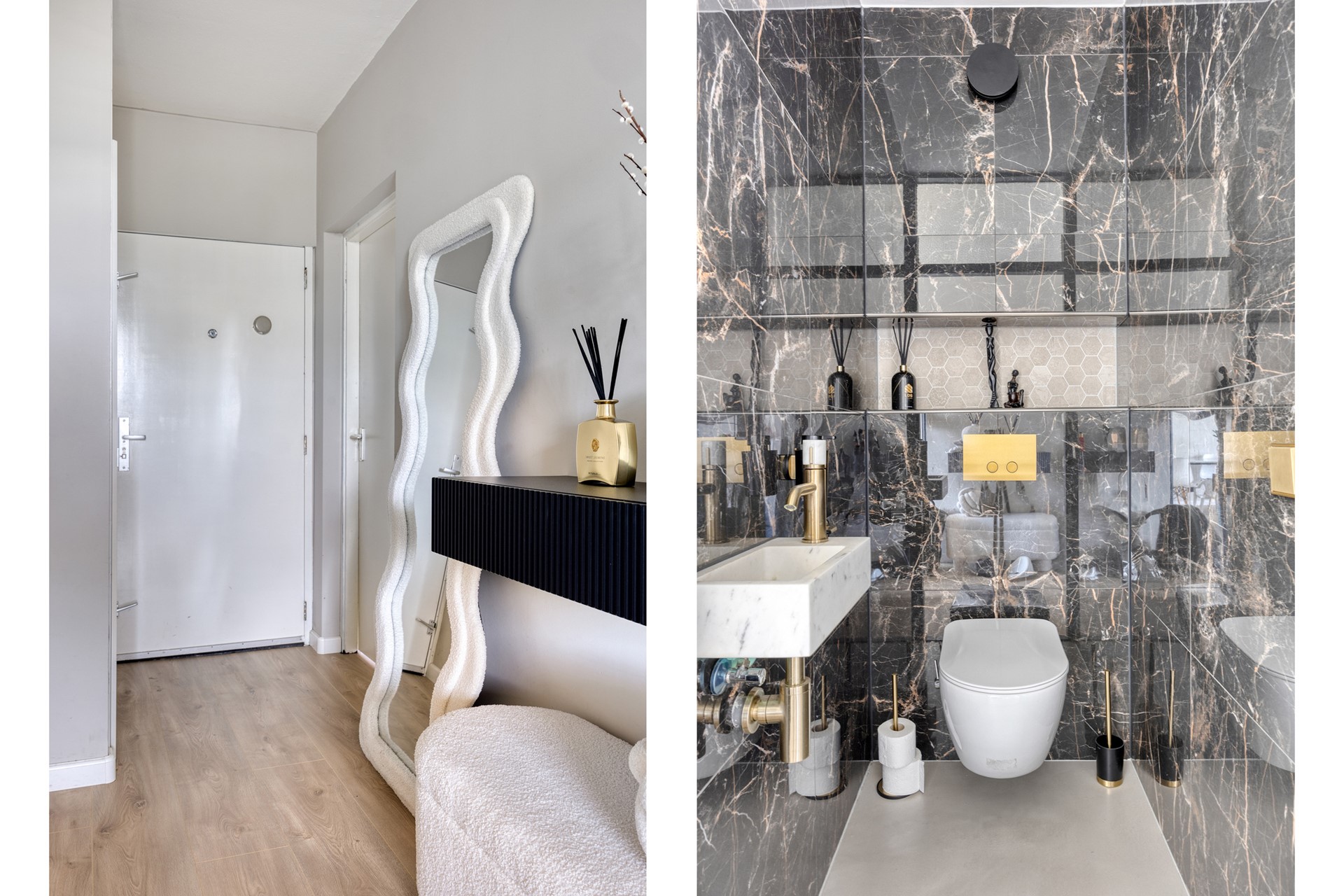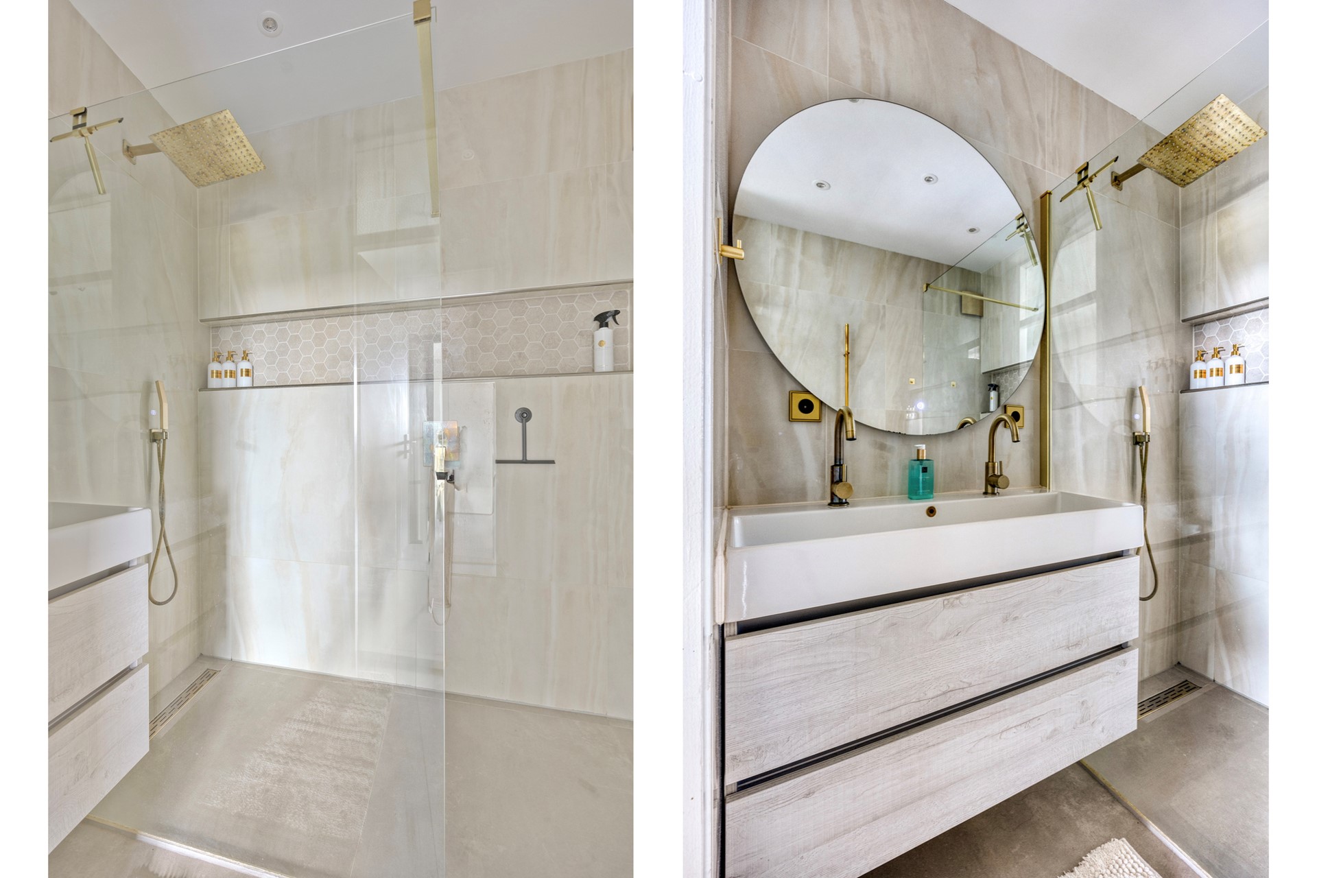 De badkamer (2021) is stijlvol afgewerkt en voorzien van een inloopdouche, wastafelmeubel, spiegel, radiator en vloerverwarming. Het toilet is in 2021 ook geheel vernieuwd.