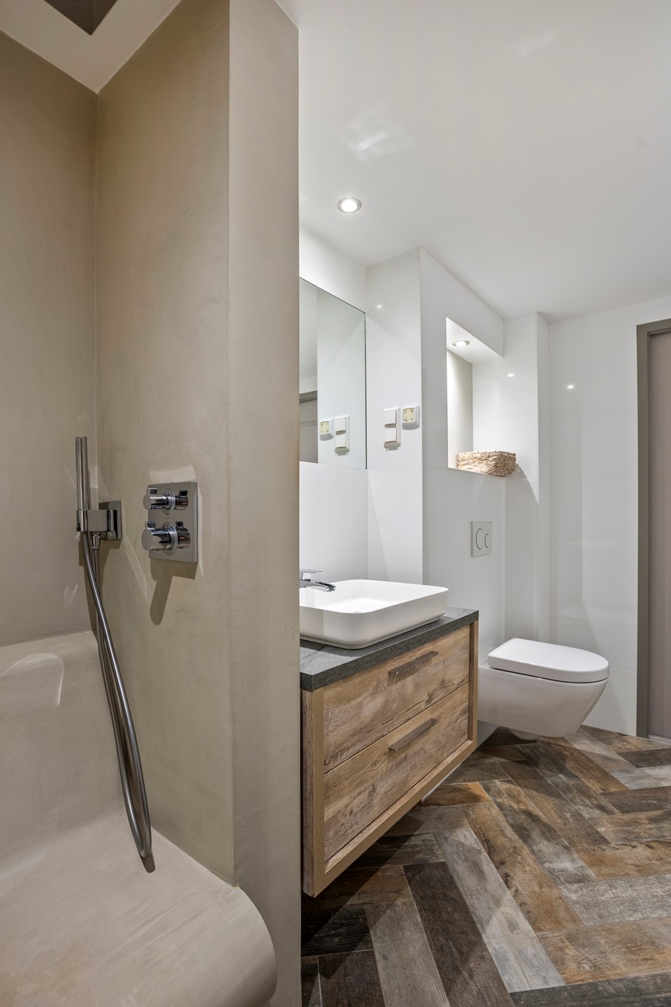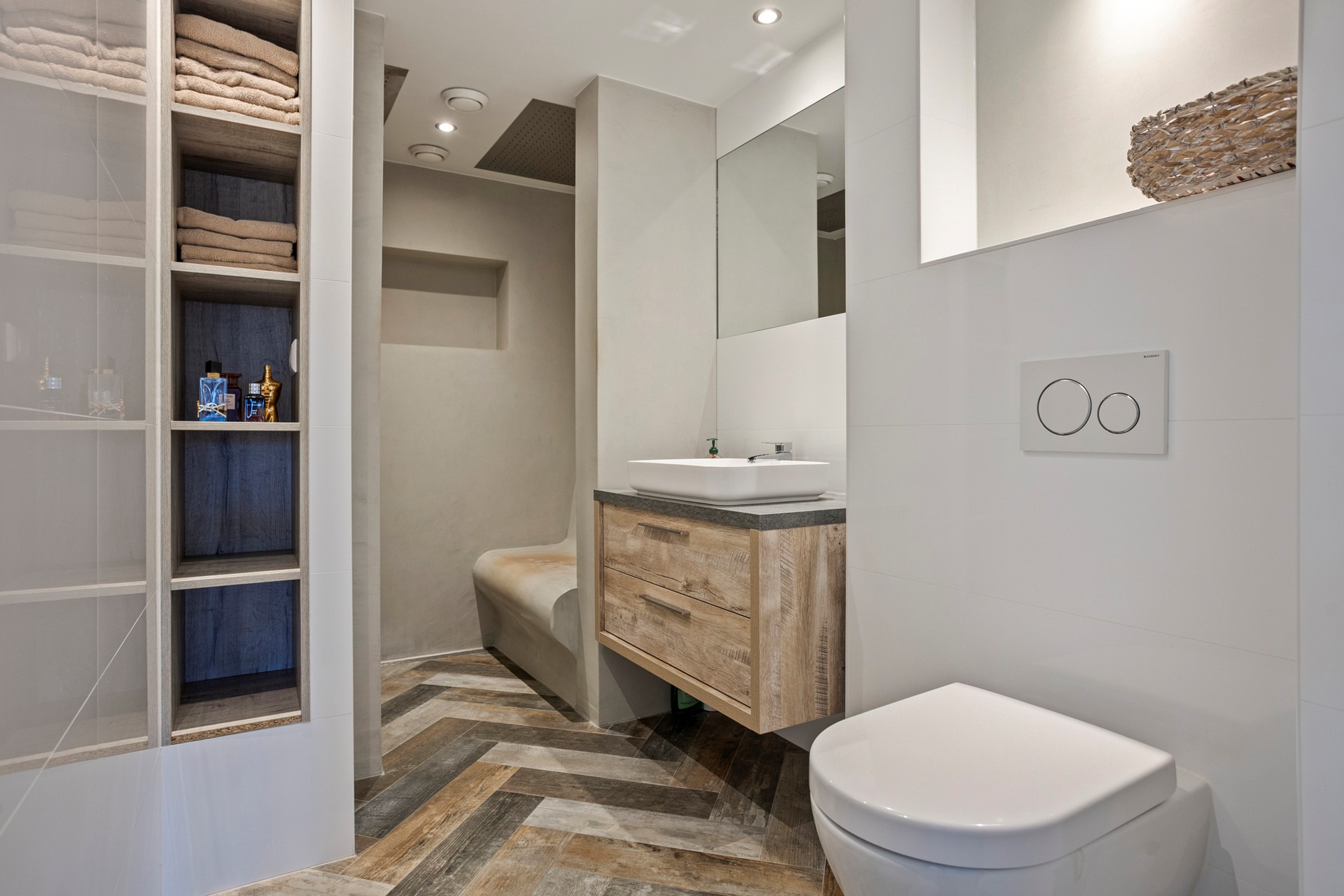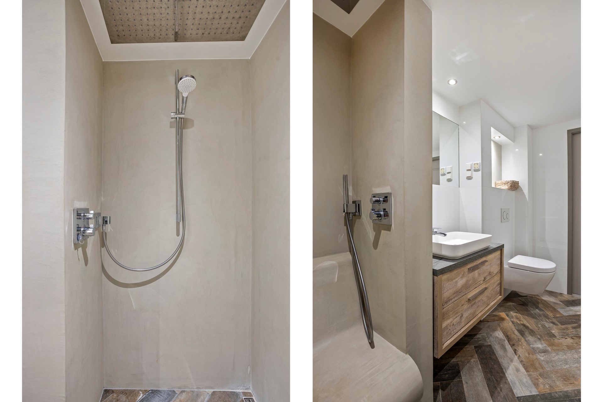 - Badkamer met inloopdouche en dubbele regendouche