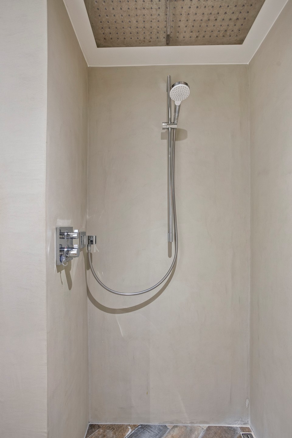 - Bathroom with walk-in shower and double rainfall showerheads