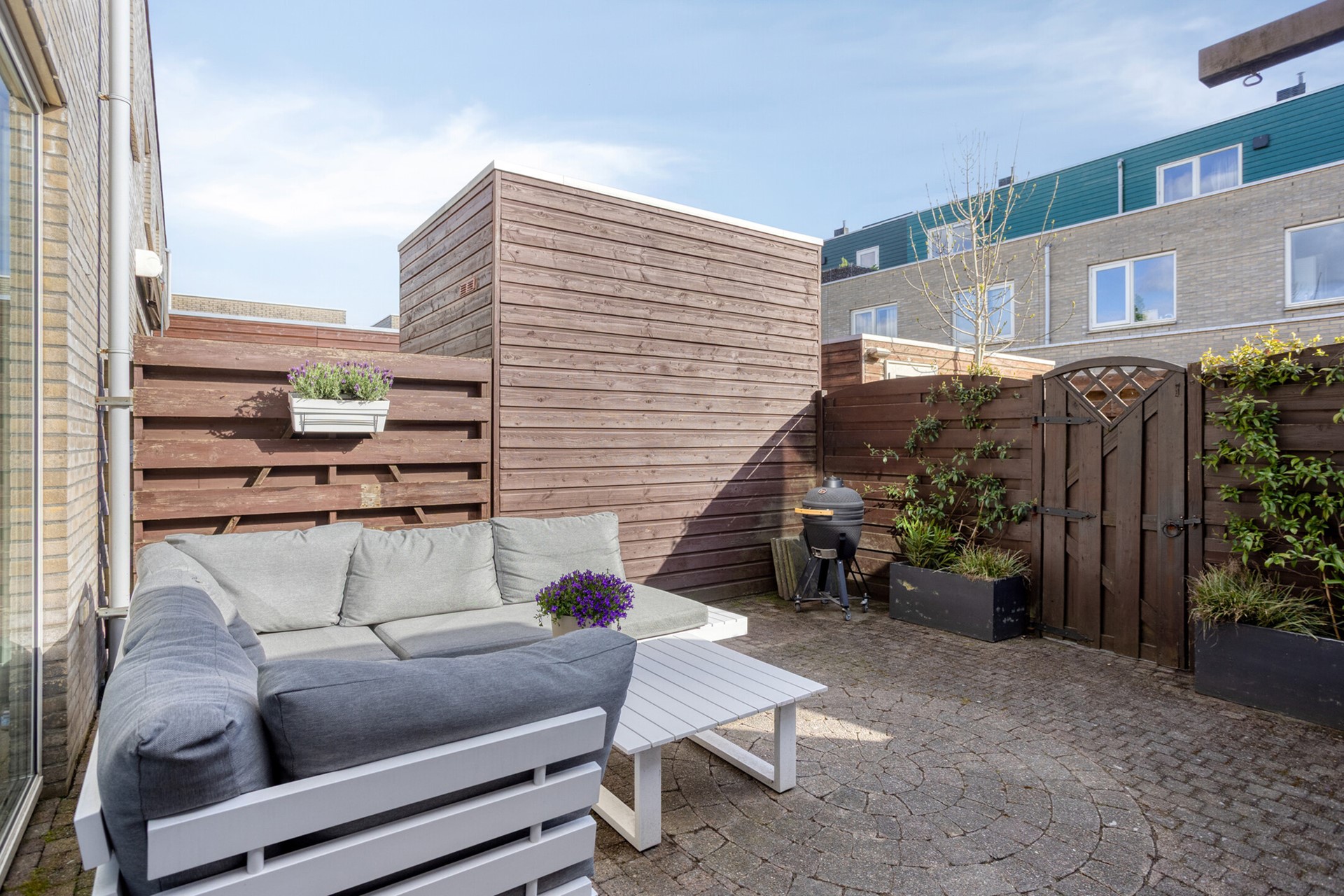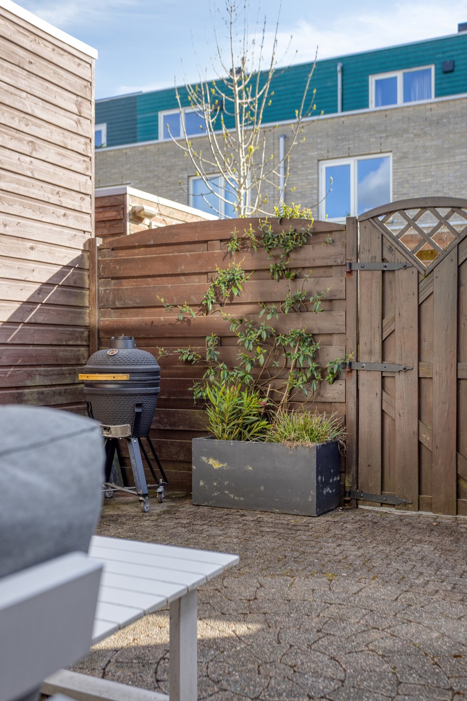 De zonnige achtertuin is gelegen op het zuiden, wat betekent dat u hier vrijwel de hele dag van de zon kunt genieten. Dit zorgt niet alleen voor een fijne buitenruimte, maar ook voor veel lichtinval in de woning. De tuin beschikt over een praktische achterom en een houten berging met elektra, ideaal voor fietsen en extra opslag.